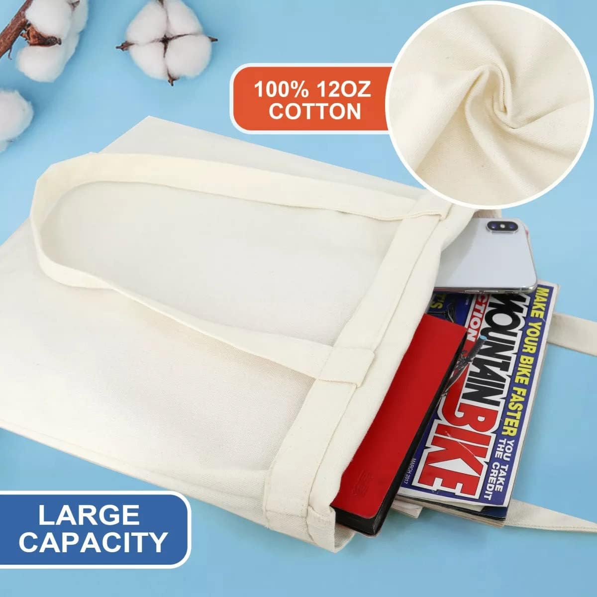 12 oz Canvas Tote Bag Aesthetic Tote Bag for Women Teacher Shopping Gift Bag for Mother's Day quantity