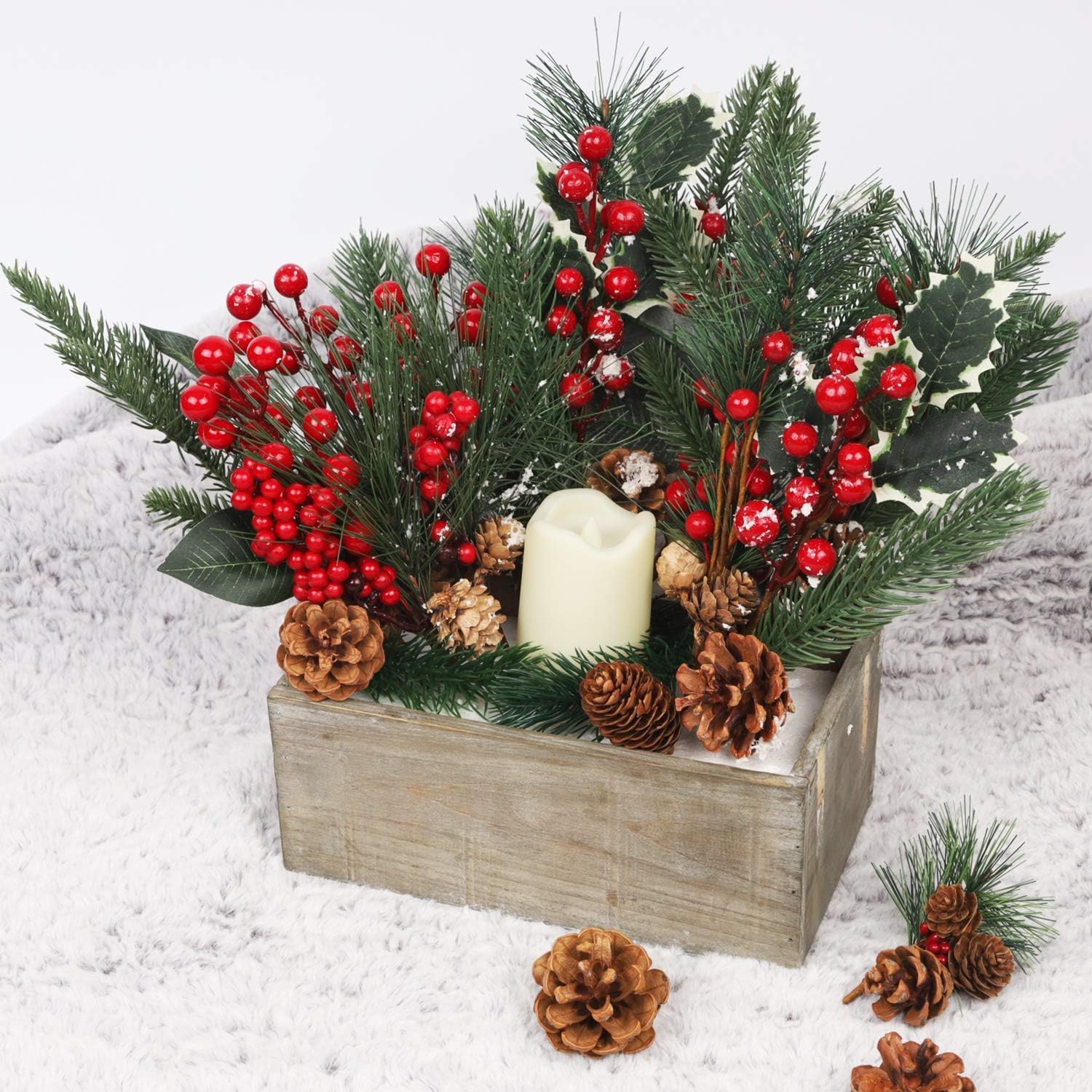 / 12 Pack Christmas Artificial Berry Twigs for Christmas Tree Decoration, DIY Christmas Red Berry Stems for Crafts Wreath Garland Christmas Ornaments Decor, 6 Designs