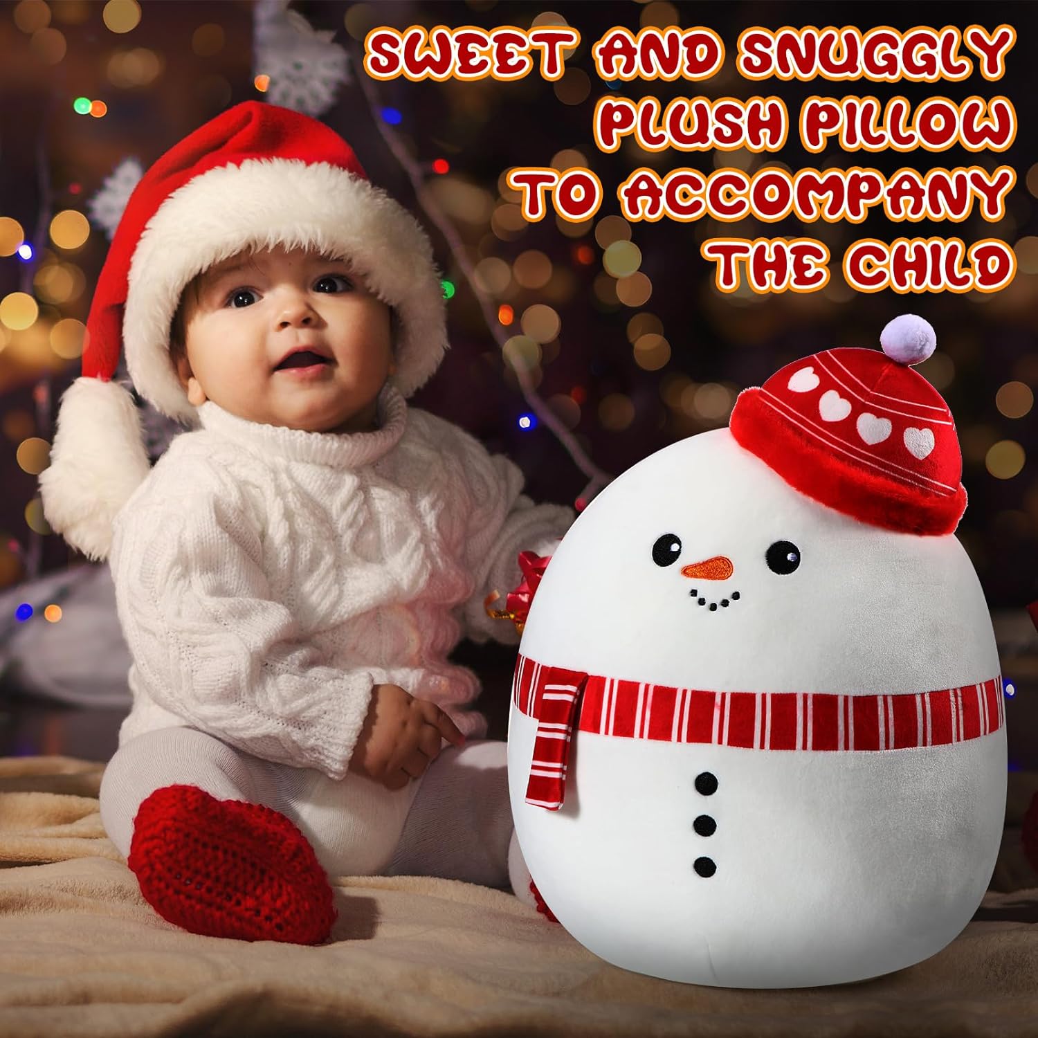 14 Inch Christmas Snowman Plush Throw Pillow Soft Cuddly Stuffed Pillow Large Christmas Hugging Cushion for Home Bedroom Office Sofa Decor Christmas Birthday Holiday Party Favor Gift