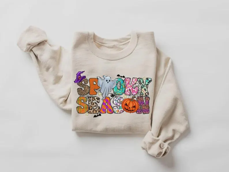 Spooky Season Ghost Sweatshirt, Halloween Crewneck