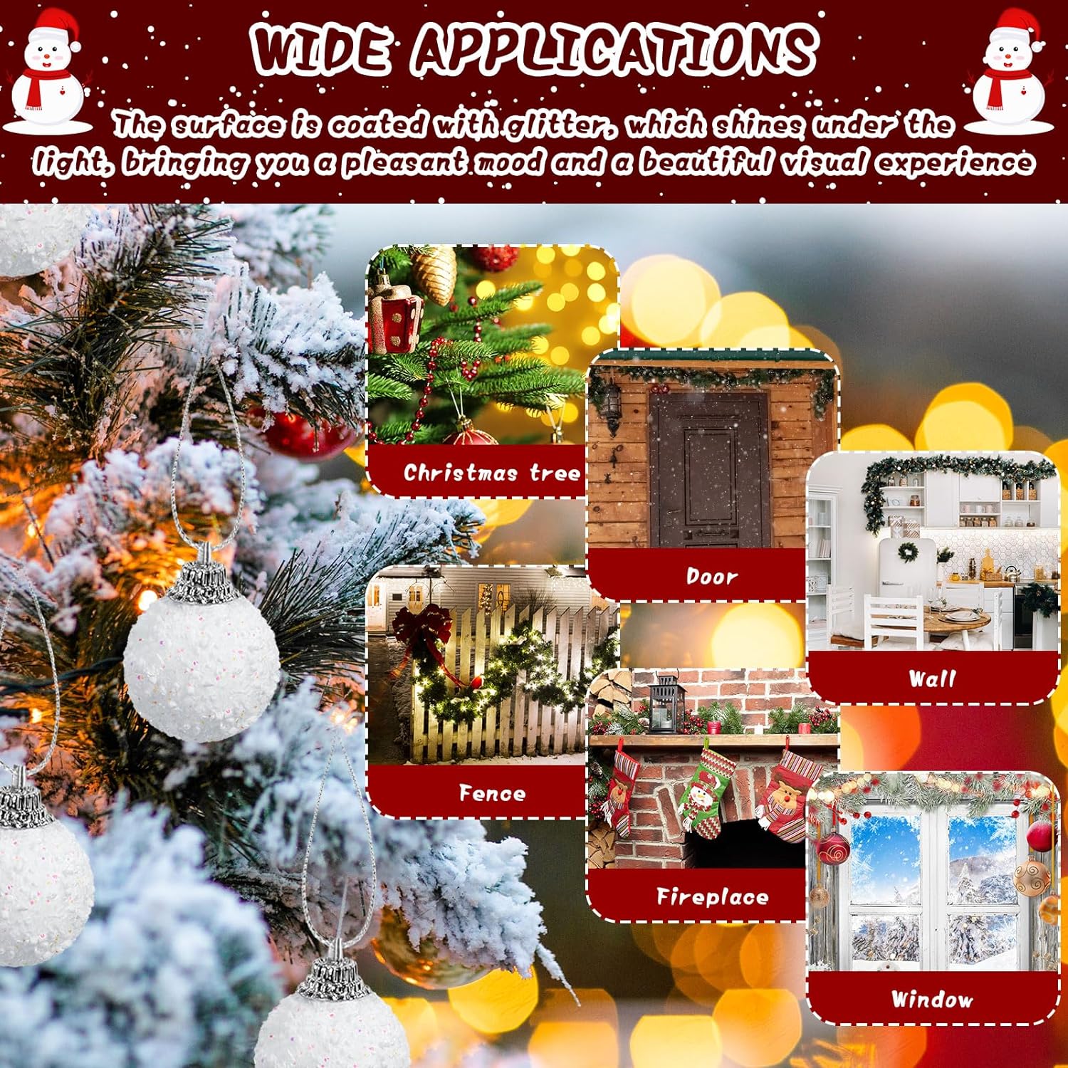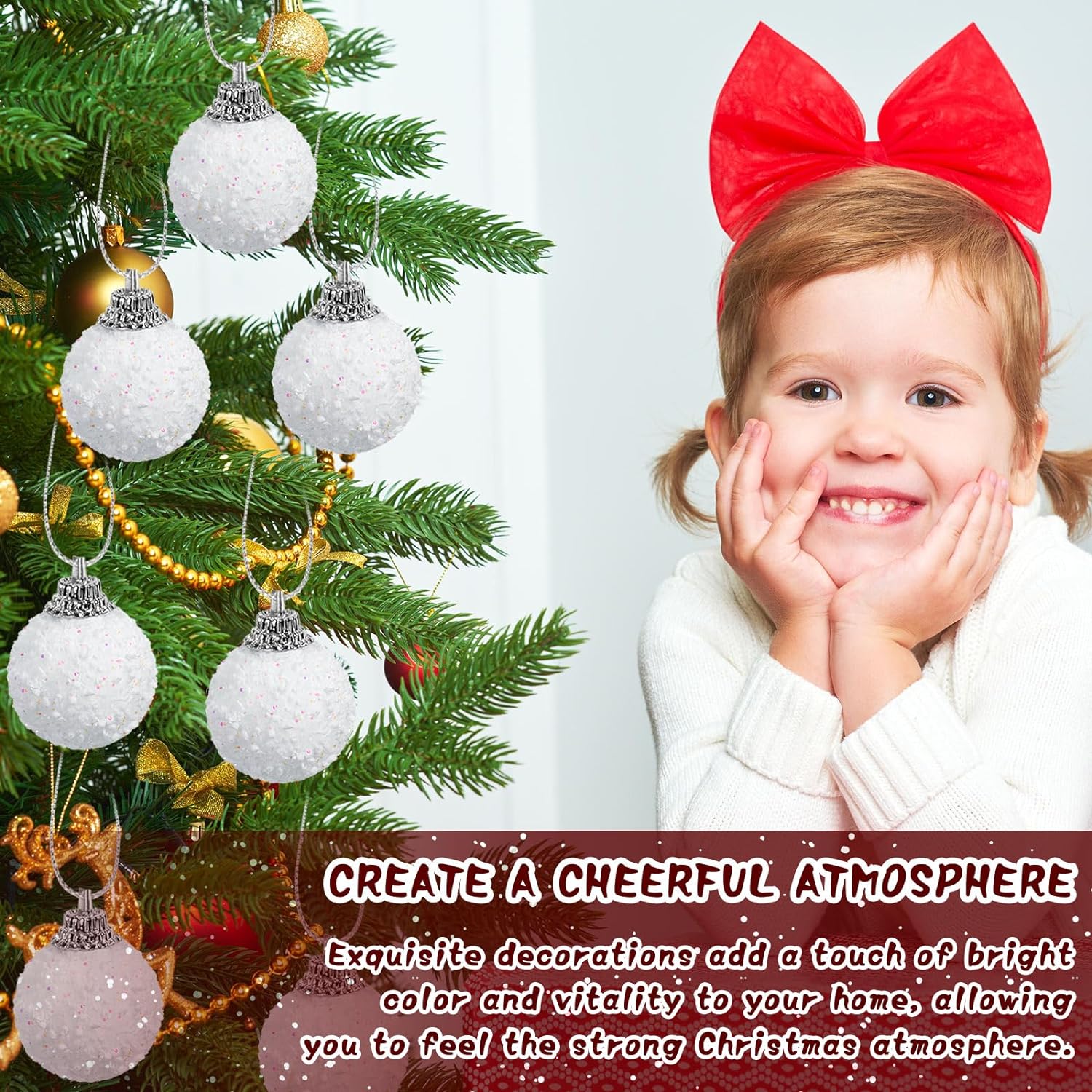 48 Pcs Mini Christmas Balls Ornaments Small Hanging White Snowballs Snowy Bauble Ornaments Xmas Tree Decoration (1.57 Inch)