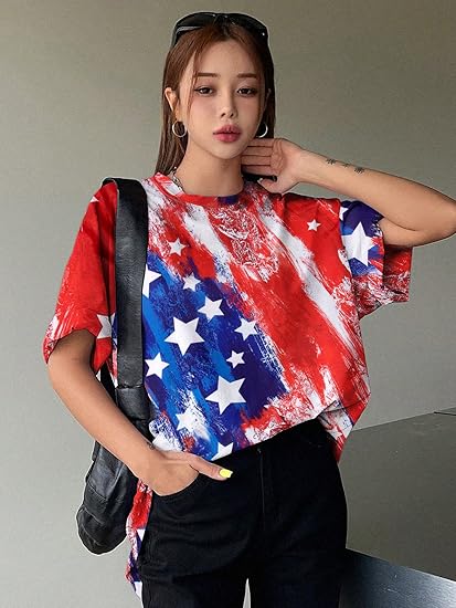 American Flag Shirt Women USA Tie-Dye 4th of July Tshirt America Patriotic Oversized Short Sleeve Tee Tops