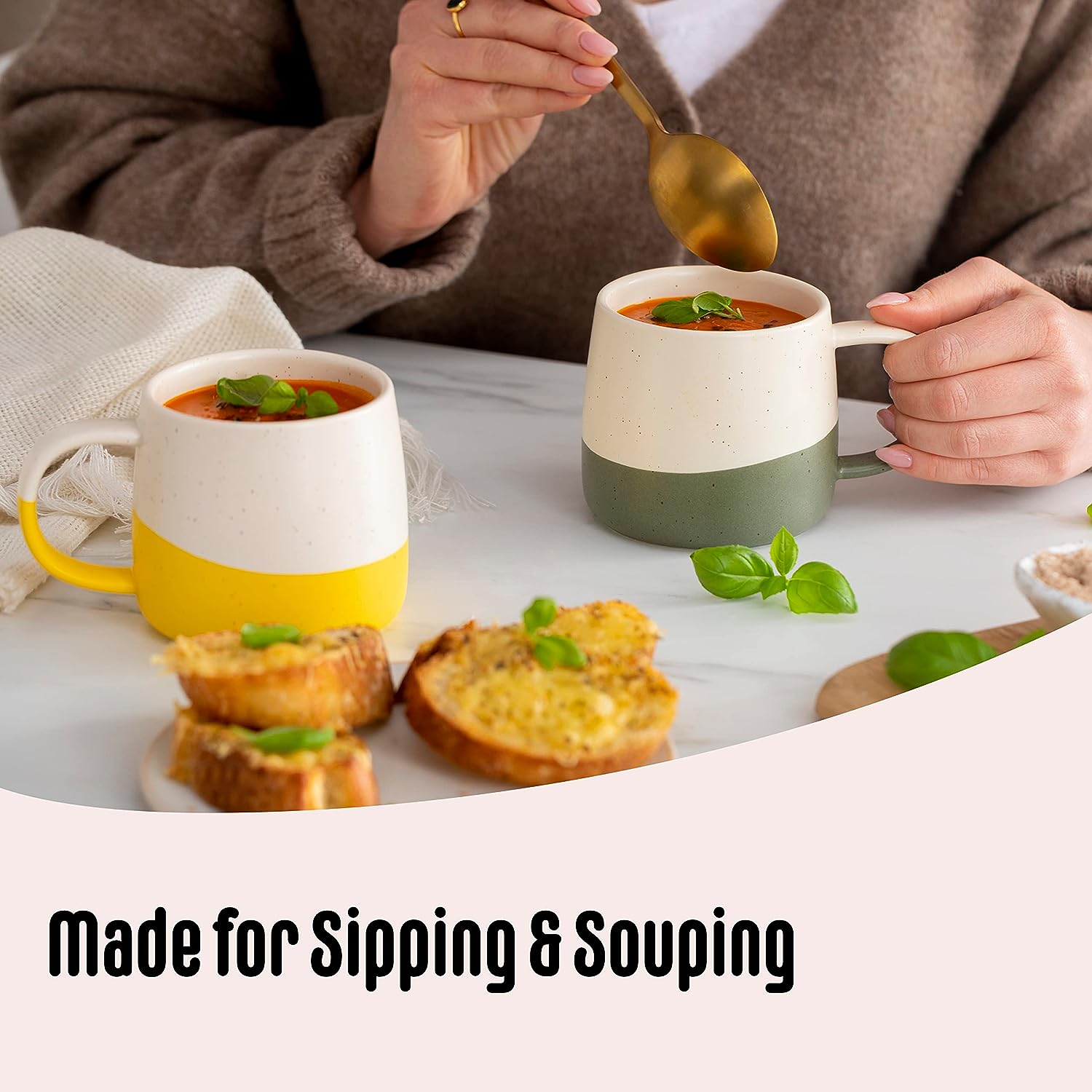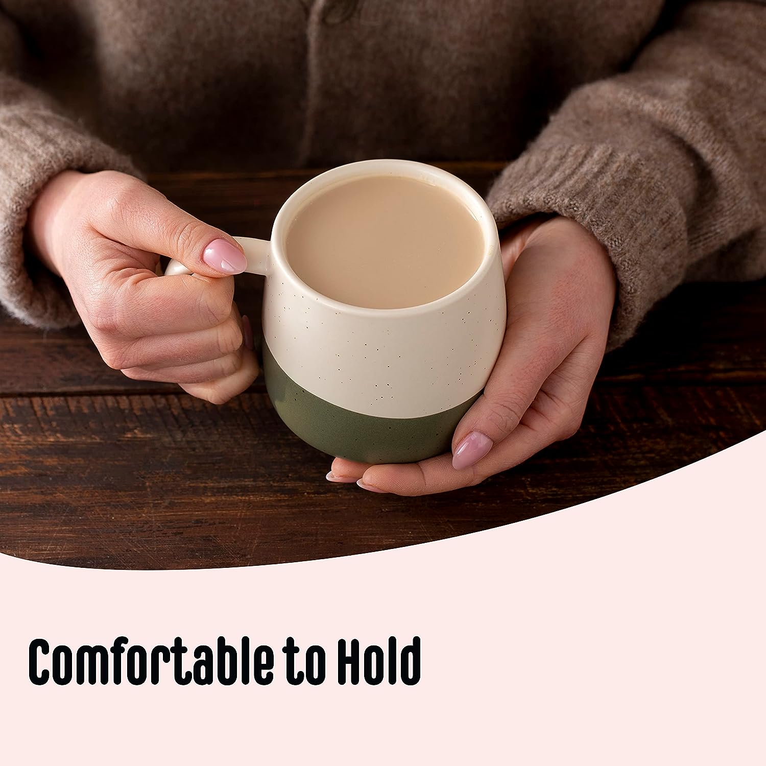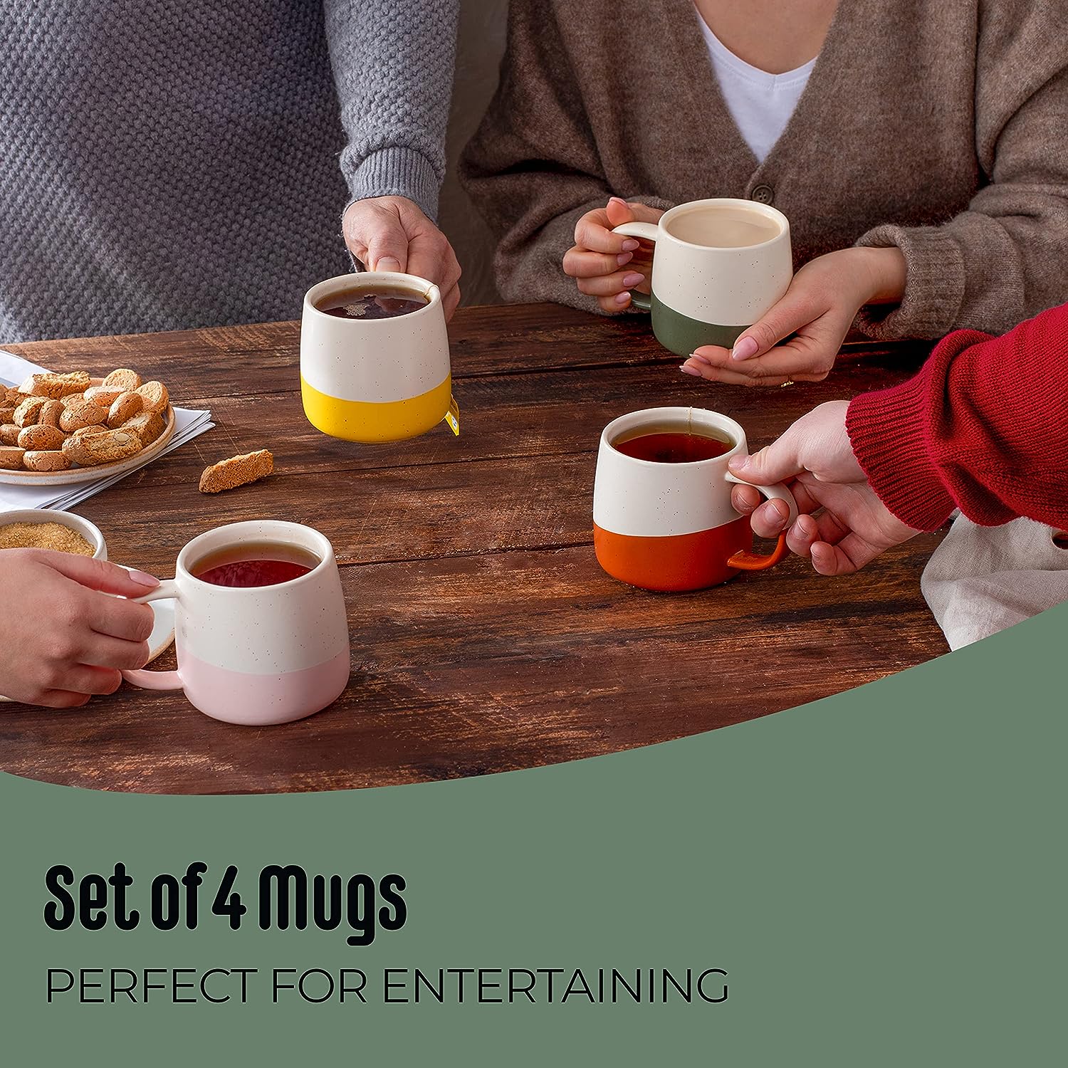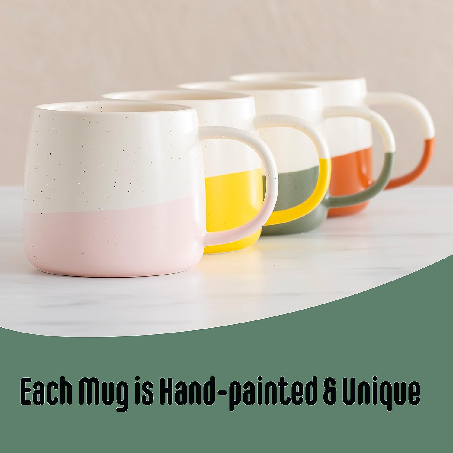 Ceramic Coffee Mugs Set of 4 - Large Stoneware Cups - Hand-Painted, Two-Tone Glazed Mug for Coffee, Tea, and More - Microwave & Dishwasher Safe