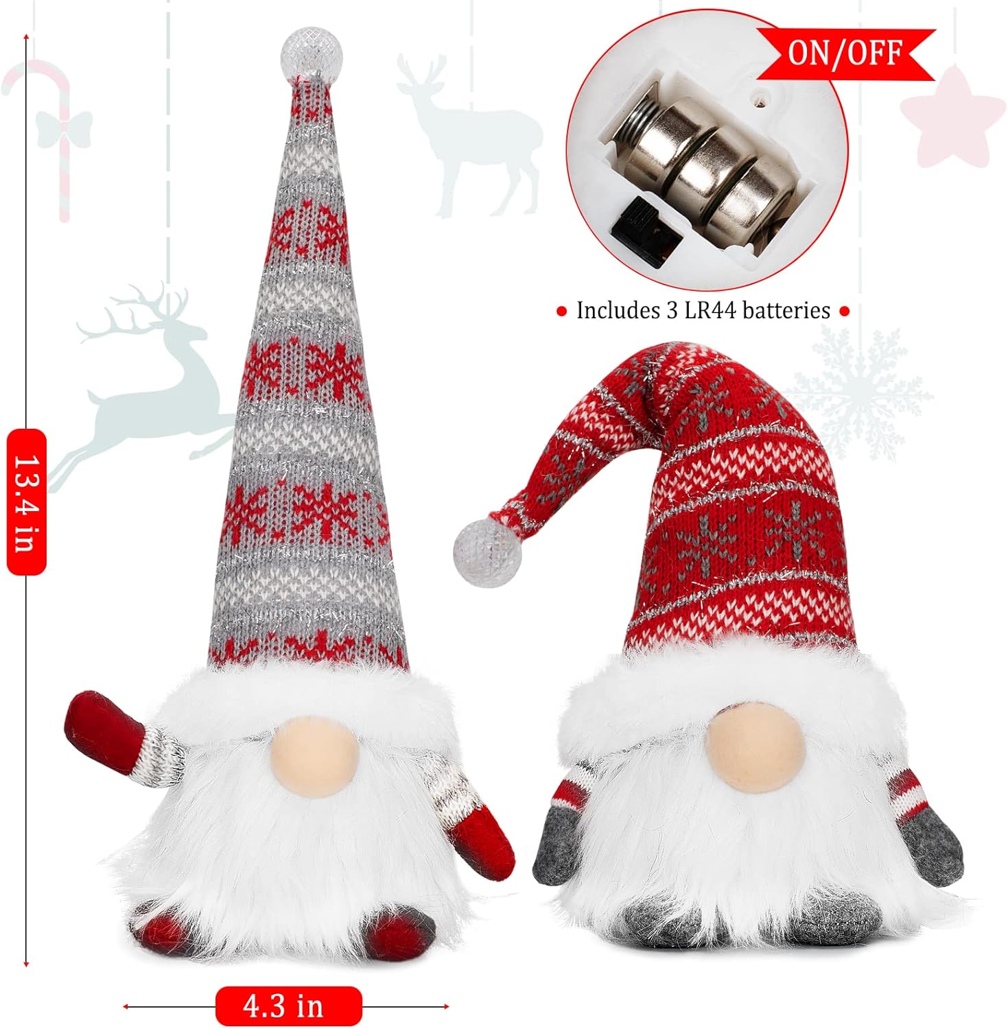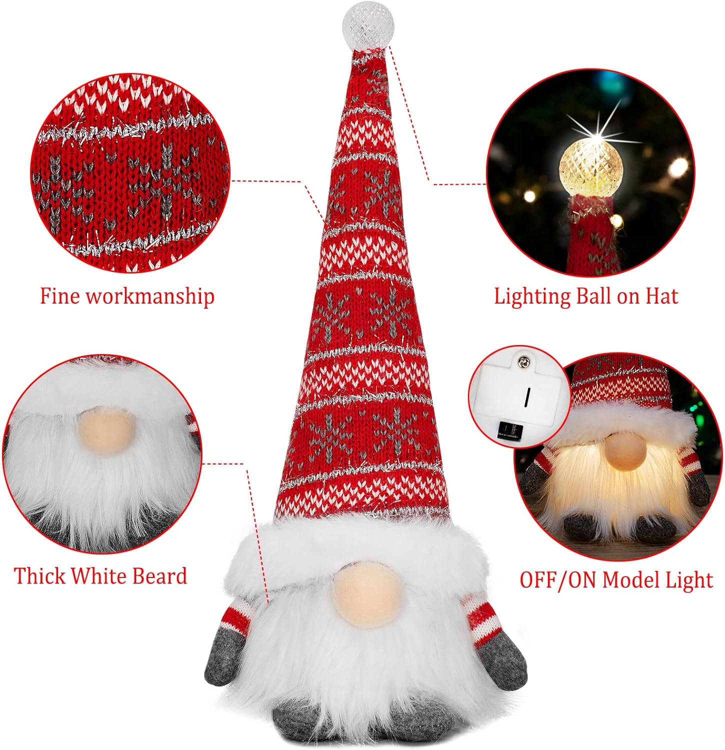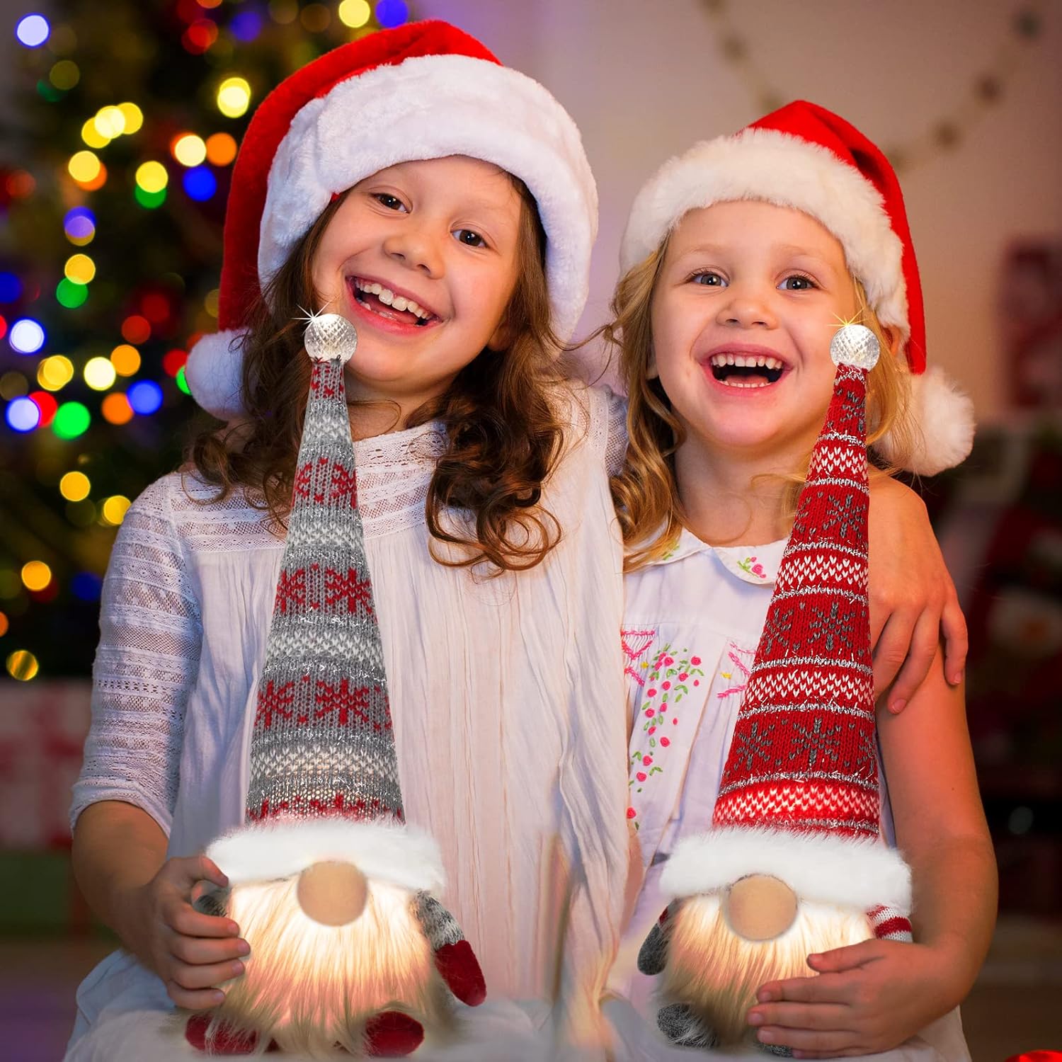 Christmas Gnomes Santa Decorations, Lighted Handmade Swedish Tomte, Light Up Plush Elf Holiday Present Gift Scandinavian Tabletop Christmas Decorations, Pack of 2…