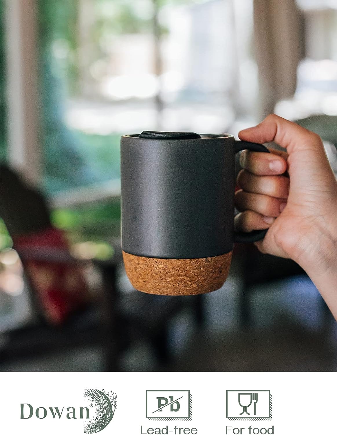 Coffee Mugs, 15 oz Mug Set of 2, Large Ceramic Coffee Mug with Cork Bottom and Spill Proof Lid for Men, Women, Big Mug for Coffee Latte, Tea, Gifts for Graduation, Matte Grey