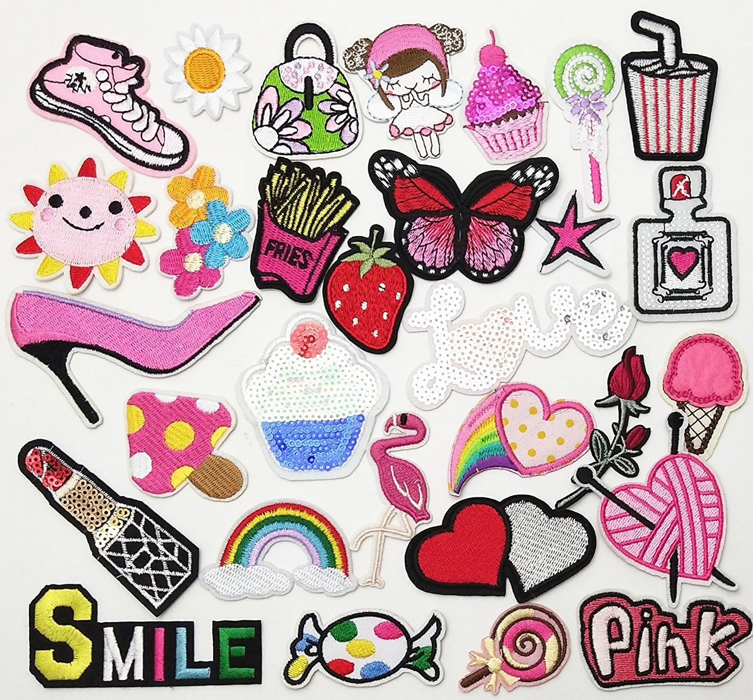 30pcs Random Assorted Styles Embroidered Patch Sew On/Iron On Patch Applique Clothes Dress Plant Hat Jeans Sewing Flowers Applique DIY Accessory (Assorted-Style 3)