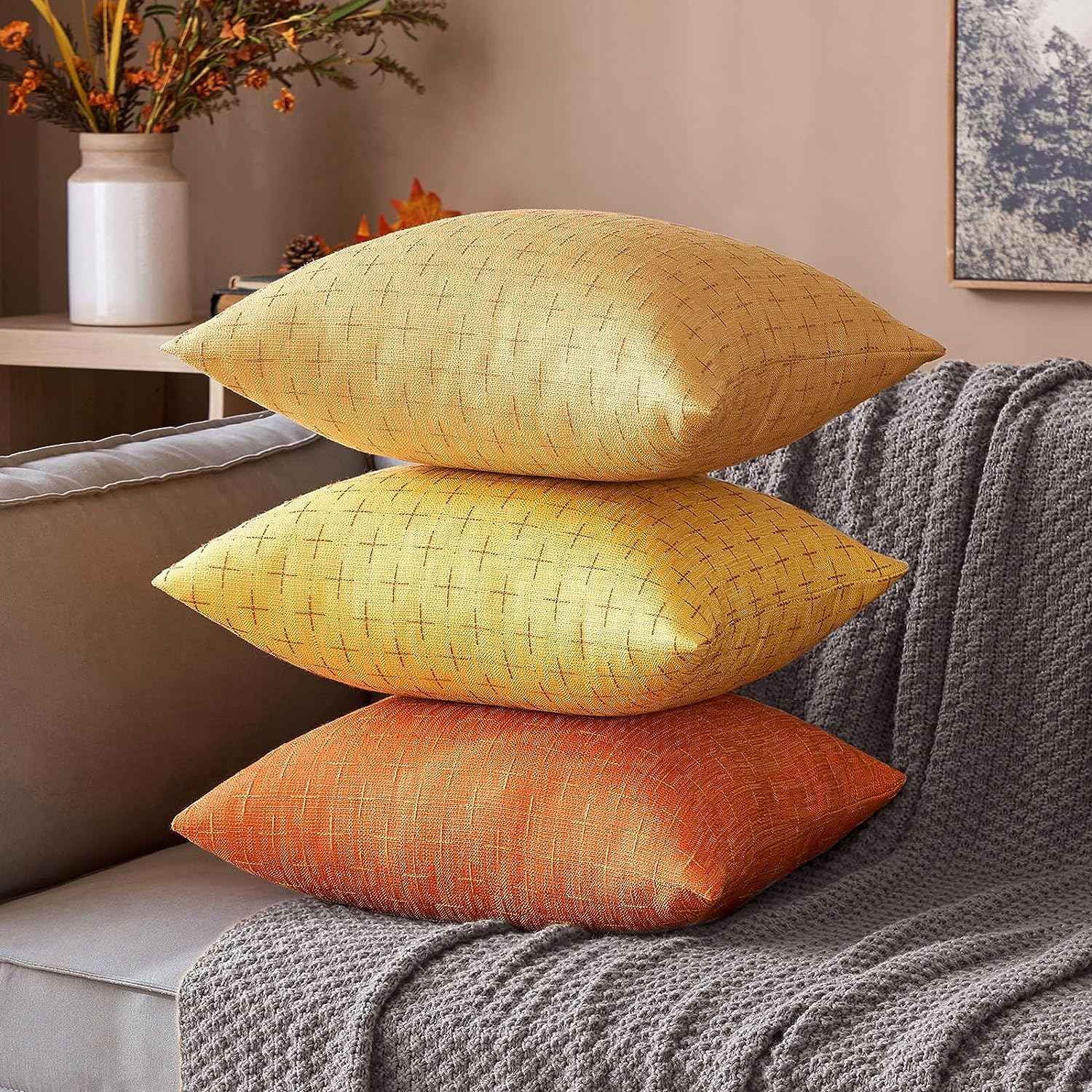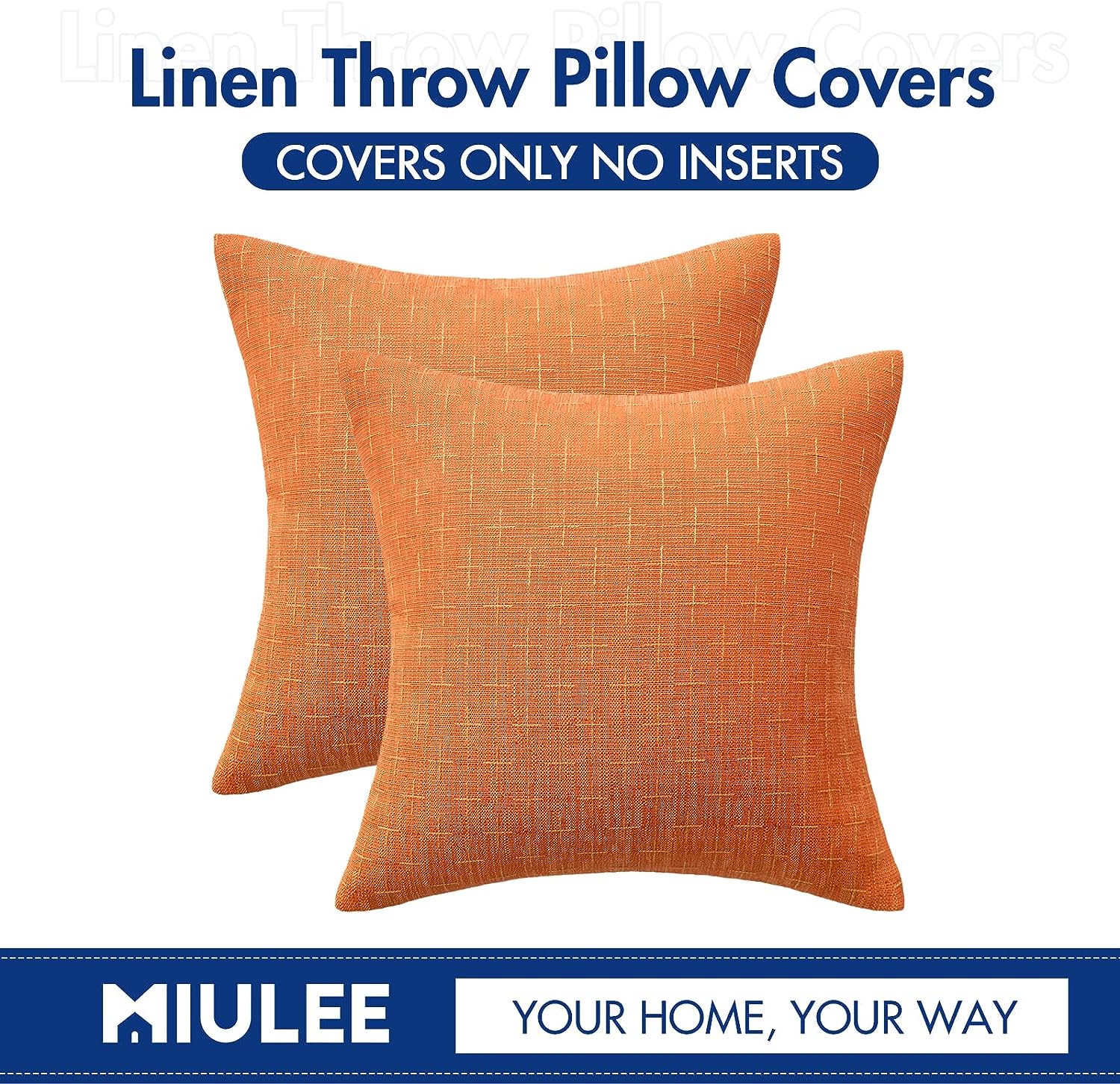 Pack of 2 Fall Decorative Burlap Linen Throw Pillow Covers Modern Farmhouse Pillowcase Rustic Woven Textured Cushion Cover for Sofa Couch Bed 18×18 Inch Burnt Orange