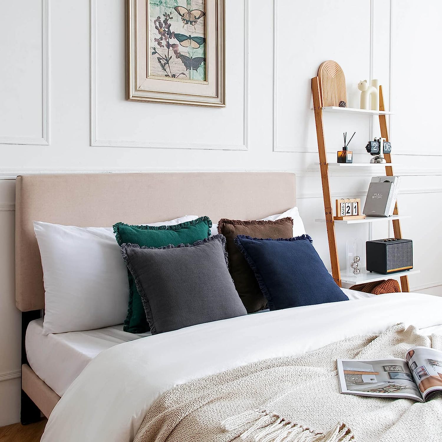 Pack of 2 Linen Pillow Covers with Tassels Fringed Decorative Rustic Natural Throw Pillowcase Cushion for Couch Sofa Bedroom 24 x 24-Inch Brown quantity