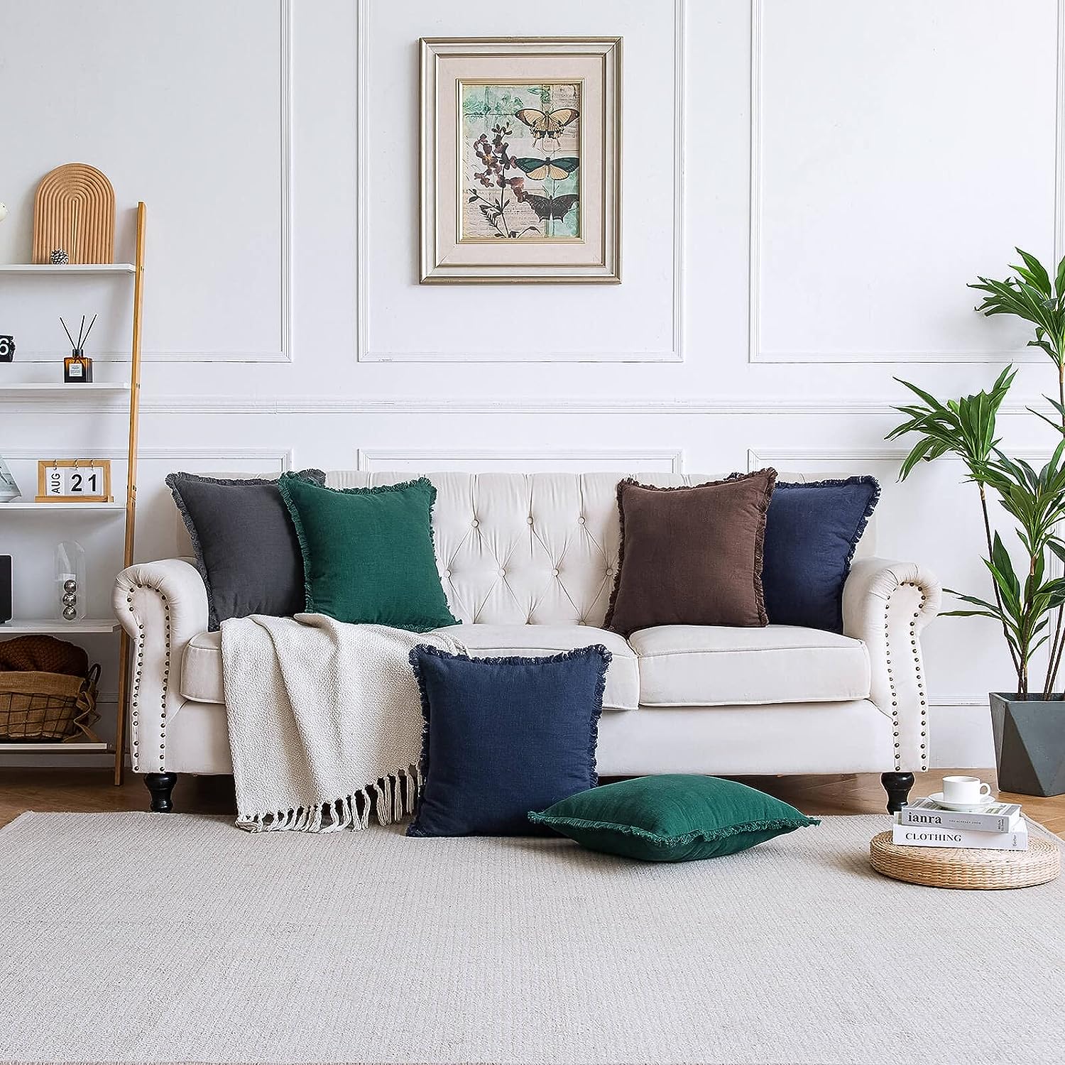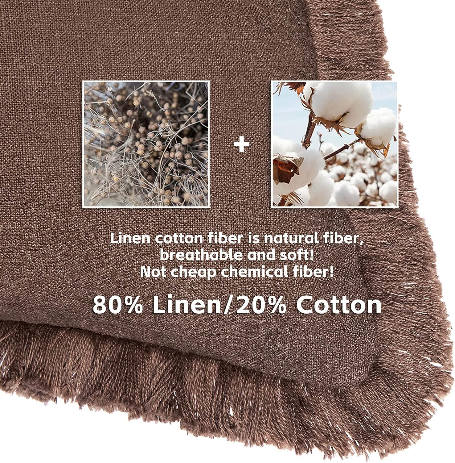 / Pack of 2 Linen Pillow Covers with Tassels Fringed Decorative Rustic Natural Throw Pillowcase Cushion for Couch Sofa Bedroom 24 x 24-Inch Brown