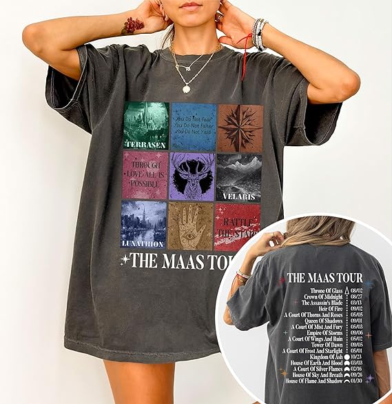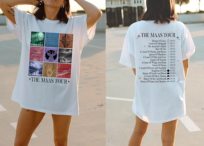 The Maas Tour Shirt – Sarah J Maas Tour Shirt, SJM 2 Sided T-Shirt for Fans, Medium, Light Pink