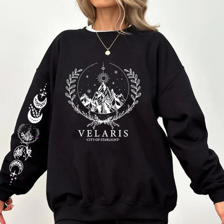 Velaris Embroidered Sweatshirt, Velaris sweatshirt, Night Court Symbol Embroidered, Velaris City Of Starlight Embroidered Shirt, SJM sweater