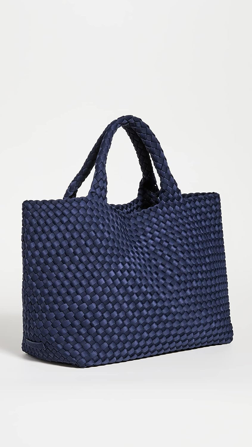 A great carryall companion for vacations and everyday adventures a like. This mid-sized Naghedi tote is crafted from the label’s signature woven neoprene and comes with a matching zipper pouch to keep you organized and on the go.